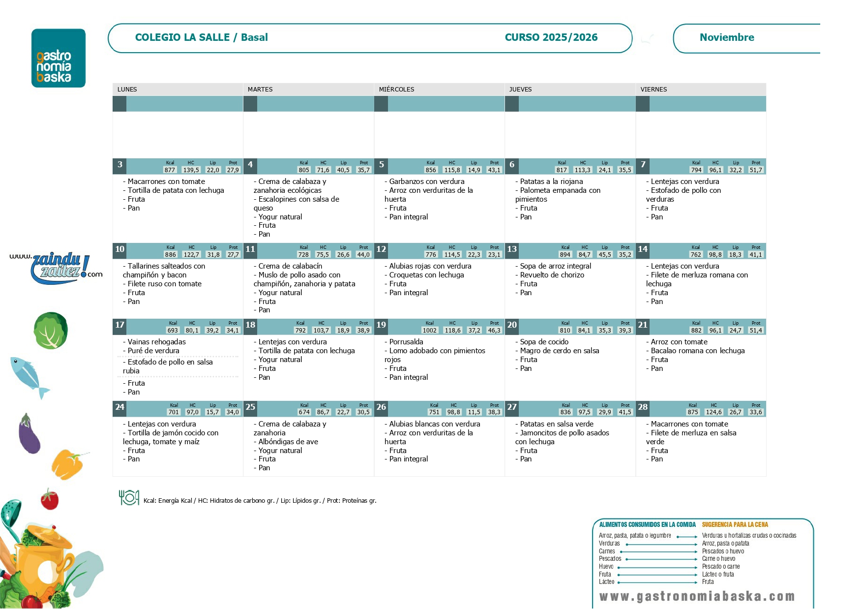 La comida que se sirve en el comedor escolar es preparada diariamente por Gastronomia Baska en la cocina del centro.