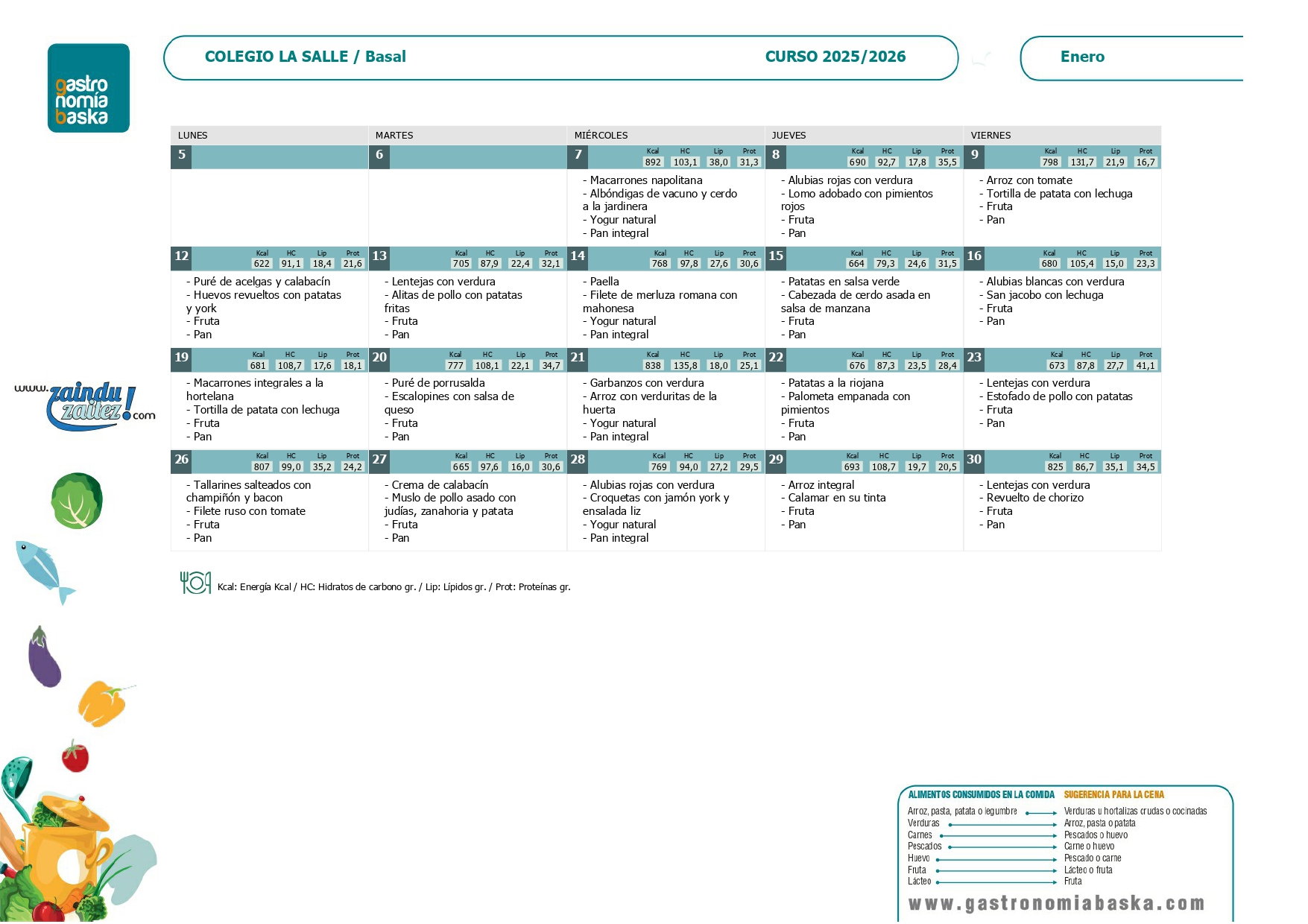 Aquí os dejamos el menú de este mes y el enlace a los menús adaptados.
